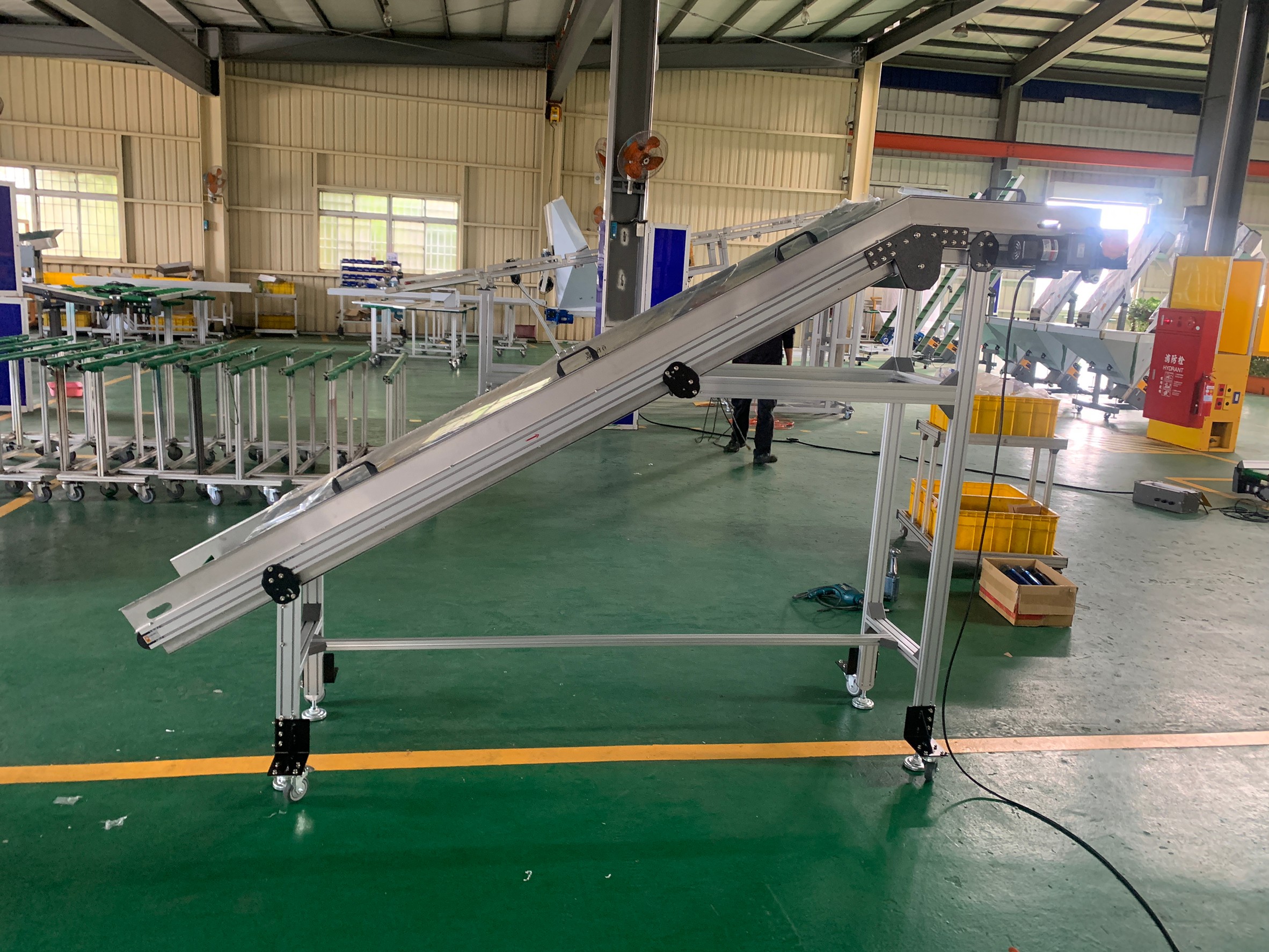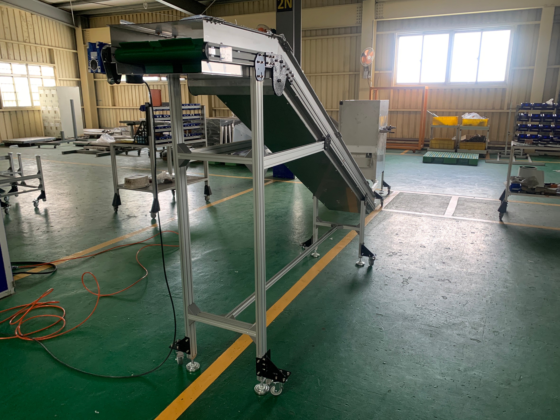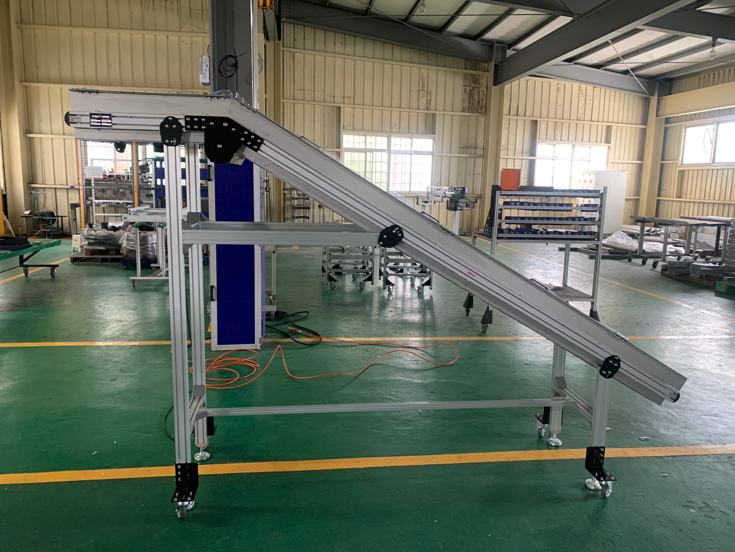 麗晨輸送機械自動化設備Conveyors | 鋁擠型皮帶鵝首式輸送機與瓶胚置料箱