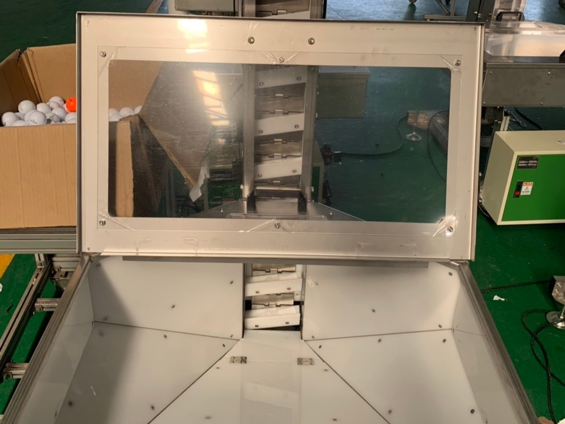 今天小編要介紹的是不銹鋼頂板帶治具輸送機,這款輸送機的成品是應用於高爾夫球的成品包裝。
