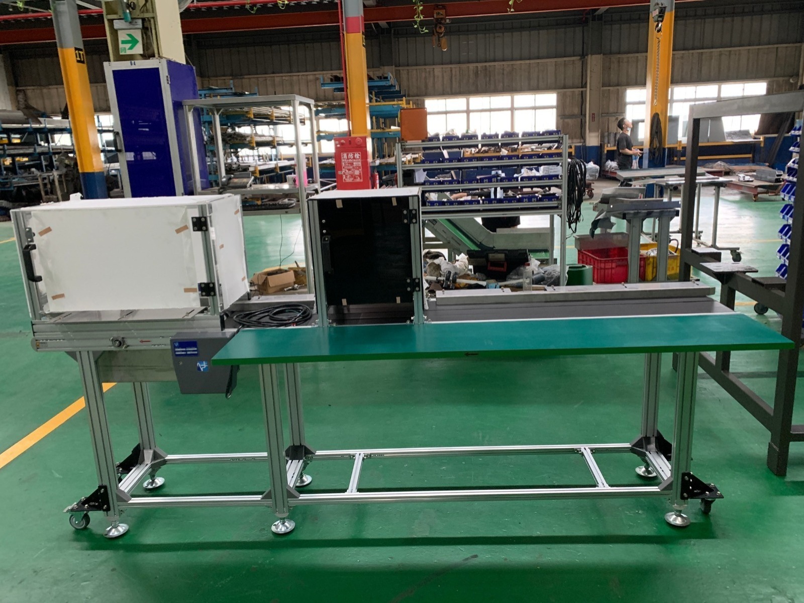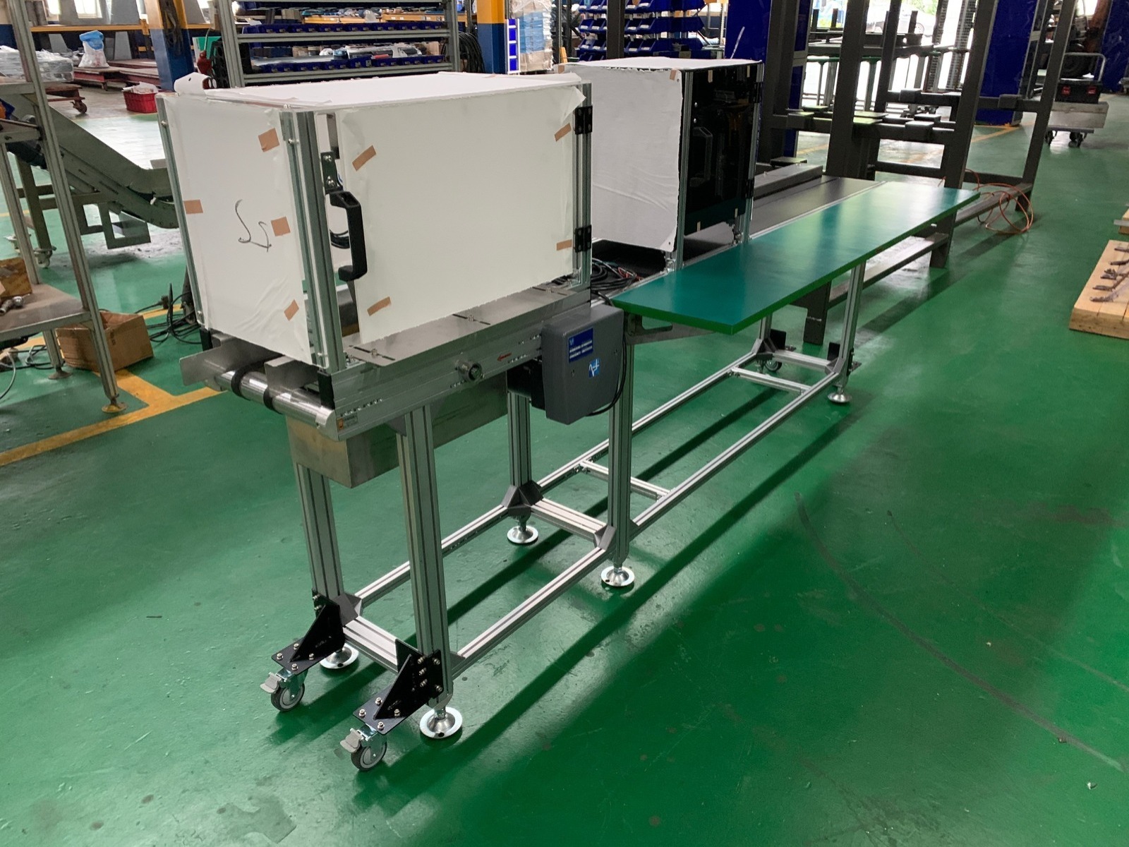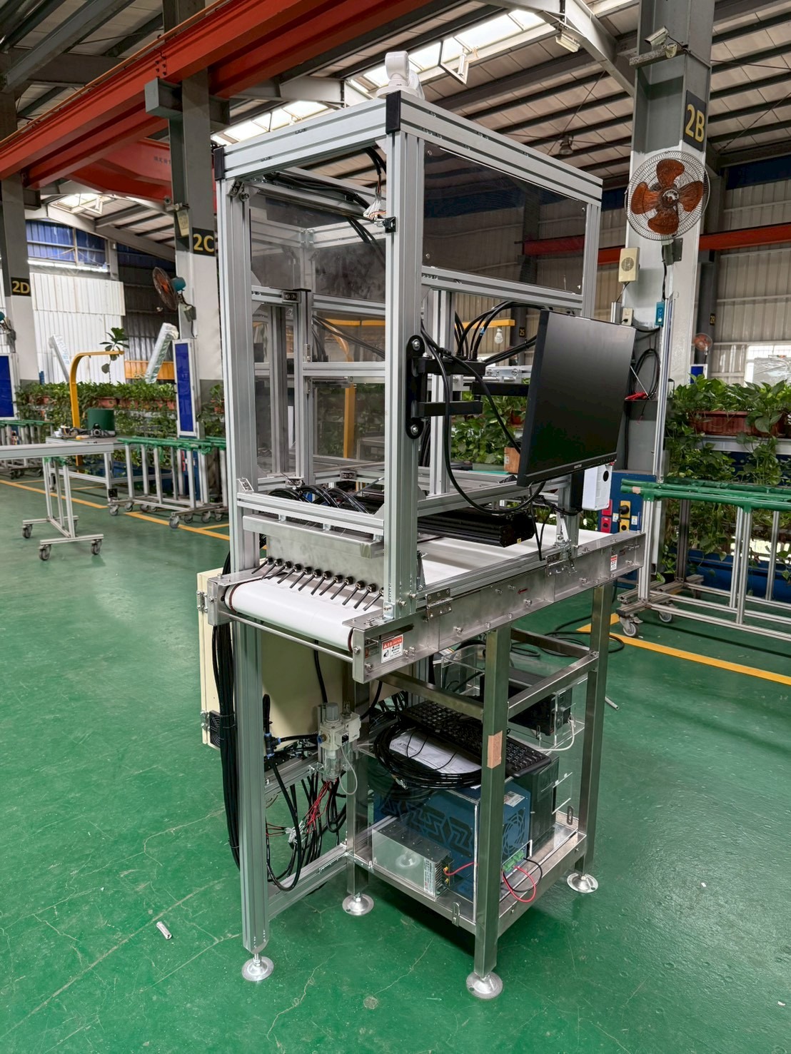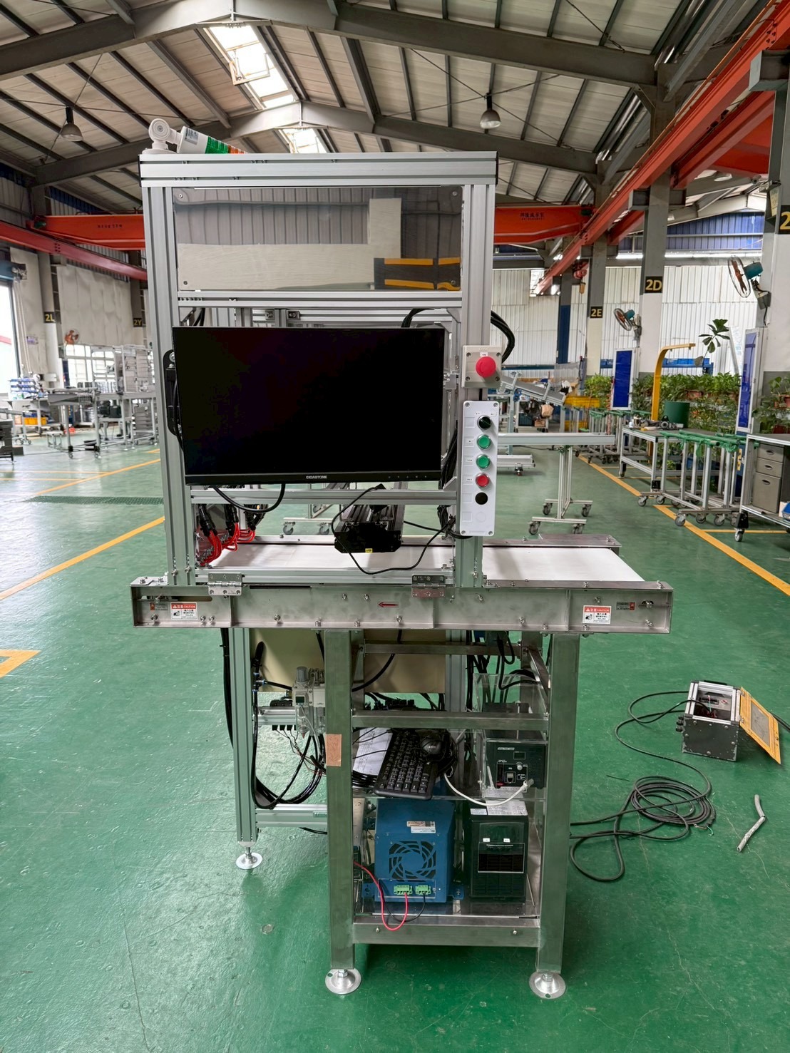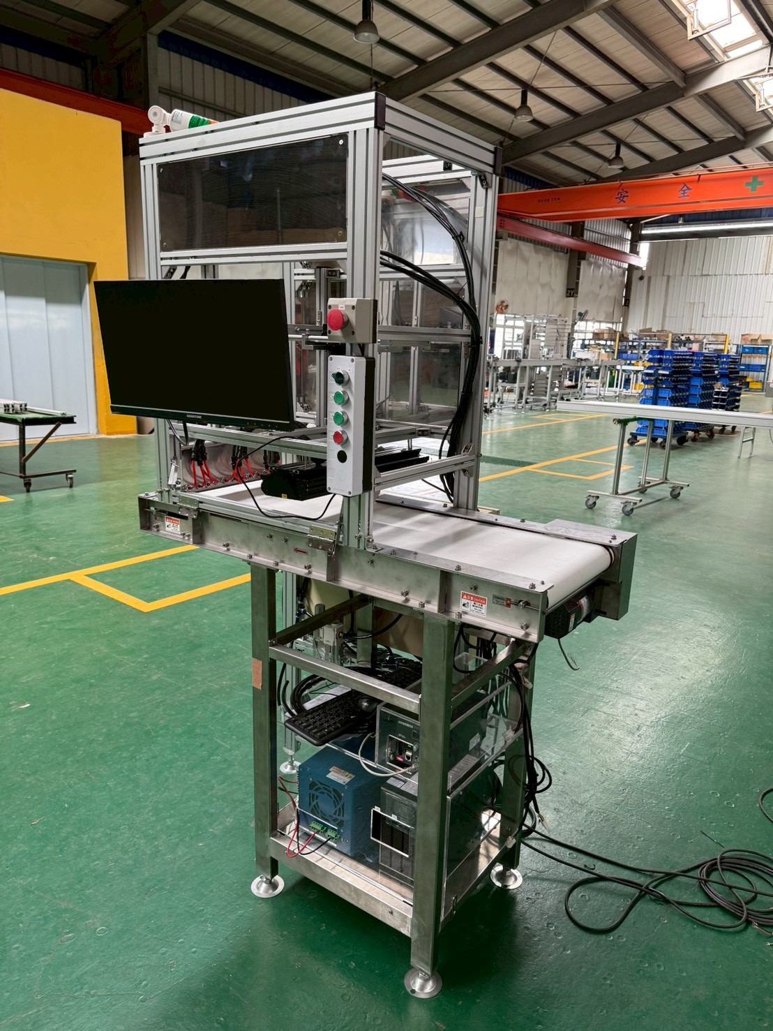 本輸送機可搭配視覺檢測系統或 AOI 自動光學檢測設備,於輸送過程中同步進行產品外觀、尺寸或缺陷判別,有效提升檢測效率並降低人工誤判風險,並可依實際需求加裝燈罩或相關配件,以確保檢測穩定性與準確度。