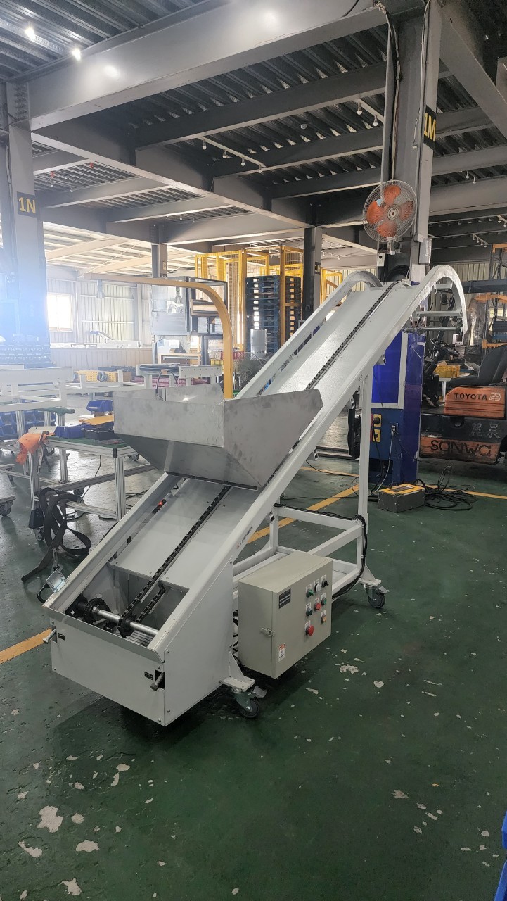本款倒料輸送機專為工業自動化輸送設計,適用於顆粒物/細小物件轉運與倒料作業。該設備能夠接收來自上一道料桶的物料,並精準控制倒料位置,將物料輸送至下一個料桶。採用鍊條傳動設計,確保輸送過程平穩無卡頓,適用於玻璃纖維、粉狀、顆粒狀等輕質物料的轉運需求。